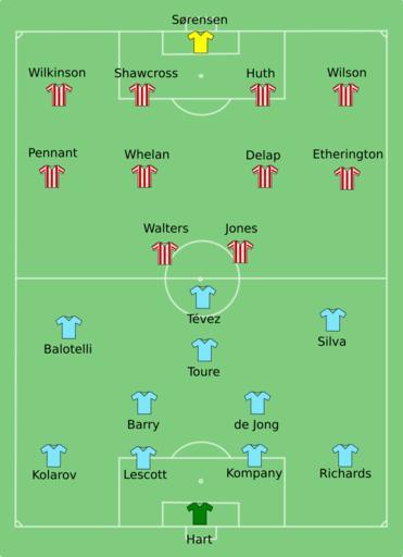 | Keywords: Manchester City vs Stoke City 2011-05-14.svg en Line-ups for the 2011 FA Cup Final between Manchester City and Stoke City at Wembley Stadium London on 14 May 2011 vi Đội hình xuất phát trận Chung kết Cúp FA 2011 giữa Manchester City và Stoke City tại sân vận động Wembley Luân Đôn vào ngày 14 tháng 5 năm 2011 own Banhtrung1 2011-05-16 Cc-zero FA Cup Final 2011 |