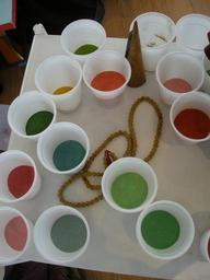 | Keywords: MandalaSable2008-02.JPG Sables colorés chapelet et chakpu entonnoir de métal utilisés lors de la réalisation d'un mandala de sable Pour la paix dans le monde par trois lamas du temple des Mille Bouddhas à la Tour de la Liberté de Saint-Dié-des-Vosges les 11 12 et 13 avril 2008 Own 2008-04-11 Ji-Elle Sand mandalas Sand mandala - Tour de la liberté - Saint-Dié-des-Vosges - April 2008 Plastic cups disposable Buddhist prayer beads | ||||