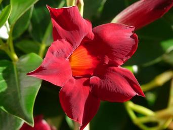 | Keywords: mandevilla blossom bloom red orange trumpet shaped funnel like neotropical liana climber semi shrub dog gift greenhouse apocynaceae crop garden plant mandevilla sanderi dipladenia funnel trichterförmig trumpet like velvety velvety red bell shaped funnel flower sundaville tropidenia |
