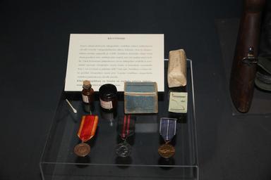 | Keywords: Maneesi univormunäyttely 14 jatkosodan sotilas esineistö.JPG en Continuation War soldier medals and personal equipment including contraceptive spermicide in the blue box fi Jatkosodan sotilaan mitaleita ja henkilökohtaisia välineitä mukana ehkäisypakkaus spermisidi own MKFI 2012-05-27 Manege Military Museum Contraception 2012 in Helsinki May 2012 in Finland Taken with Canon EOS 60D Taken with Canon EF-S 15-85mm F3 5-5 6 IS USM Files by User MKFI | ||||
