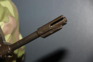 | Keywords: Maneesi univormunäyttely 28 kokelas 1960-luku rynnäkkökivääri.JPG en Muzzle of Finnish M/62 assault rifle with three-pronged flash suppressor and a bayonet groove fi Rynnäkkökivääri M/62 n suun kolmepiikkinen liekinsammutin ja pistimen kiinnike own MKFI 2012-05-27 Manege Military Museum Valmet M62 Flash suppressor 2012 in Helsinki May 2012 in Finland Taken with Canon EOS 60D Taken with Canon EF-S 15-85mm F3 5-5 6 IS USM Files by User MKFI | ||||