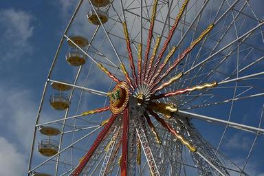 Keywords: manege wheel fair fairground city attractive sky games festival colors clouds amusement park ferris wheel attraction height blue sky structure leisure