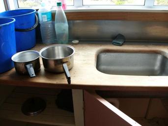 Keywords: Mangaturuturu Hut 9.jpg Interior of the Mangaturuturu Hut sink 2013-03-25 Own Sarang Mangaturuturu Hut