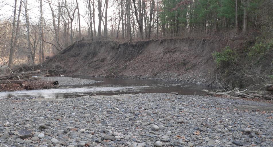 | Keywords: Manna site cut bank 1.jpg 93000608 en Eroded south bank of Raymondskill Creek just above its junction with the Delaware River in Pike County Pennsylvania Camera is facing downstream; the sunlit trees visible through the trees in left foreground are on the far east bank of the Delaware which flows from left to right The erosion on the south bank of the creek is cutting into the Manna archaeological site part of the Minisink Historic District 2011-11-26 own Ammodramus cc-zero Uploaded with UploadWizard Pictures by Ammodramus Taken with Panasonic Lumix DMC-FZ20 Manna archaeological site |