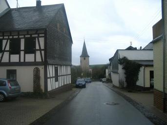 Keywords: Mannebach01.jpg Ortsmitte Mannebach im Hunsrück Own 12 11 2006 Markus Braun Timber framing in Hunsrück Cultural heritage monuments in Beltheim Mannebach Beltheim