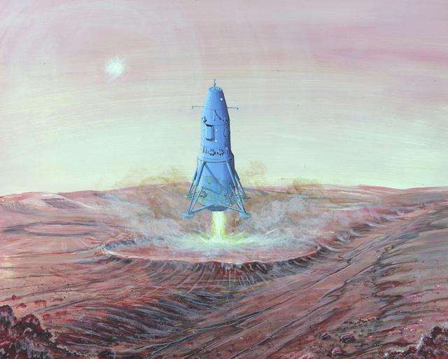 | Keywords: The Soviet Union had conceptual plans in the 1980s to send manned spacecraft to Mars in the 1990s, even though its program to land cosmonauts on the moon failed. The Mars mission would have required launching the spacecraft's components into Earth orbit for assembly. The roundtrip journey to the Red Planet would have taken at least a year. Post-Soviet Russia cancelled the program due to its expense and questions regarding its feasability. Date: 1986  (Credit: Defense Intelligence Agency/Brian W. McMullin) The Soviet Union had conceptual plans in the 1980s to send manned spacecraft to Mars in the 1990s, even though its program to land cosmonauts on the moon failed. The Mars mission would have required launching the spacecraft's components into Earth orbit for assembly. The roundtrip journey to the Red Planet would have taken at least a year. Post-Soviet Russia cancelled the program due to its expense and questions regarding its feasability. Date: 1986  (Credit: Defense Intelligence Agency/Brian W. McMullin)  |