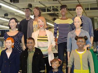 Keywords: mannequins mall dummies display dummies manikins indoors happy family artificial people human shopping