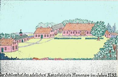 | Keywords: Mannhardt-Hof Hanerau (1799).jpg Zeichnung des Gutshofs von Johann Wilhelm Mannhardt in Hanerau wie er Anfang des 19 Jahrhunderts ausgesehen hat Sie entstammt dem Zeichenbuch von Wilhelm Mannhardt könnte aber auch von den Geschwistern erstmalig gemalt worden sein Wilhelm wurde 1800 geboren Eindeutig ist dass der Hof im Jahre 1799 ein anderes Gesicht hatte; denn es stand nur das Torhaus das große Gebäude 2 von rechts Im Vordergrund sind Gesteinsreste des vorherigen 1782 “1784 abgebrochenen Herrenhauses zu sehen Alle anderen Gebäude wurden erst unter Johann Wilhelm Mannhardt gebaut und standen 1799 sicher noch nicht Eckart Niemöller Johann Wilhelm Mannhardt Ein Theologe gründet ein Dorf Rendsburger Jahrbuch 2011 S 163 “179 1799 author Anonymous-EU Farms Schleswig-Holstein in the 1800s |