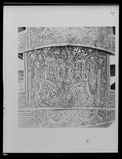 | Keywords: Manpansar, möjligen tillhörigt Johan III, 1500-talets mitt - Livrustkammaren - 70899.tif LSH artwork sv Driven stålplåt med heltäckande etsad dekor Insidan svärtad med tydliga slagmärken Bestående av elva U-formiga skenor ökande i längd bakåt Skenorna lagda omlott och sammanfogade i varandra med längsgående 25 mm breda band av gulvitt sämskat skinn fästade med en nit i var skena På var sida en urtagning rektangulär med rundad nedre kant och vid sidan om denna en dekorativ nit med kullrig gulmetallhätta Kanterna nertill lätt rundade och baktill fasade Första skenan med insvängda sidor i mitten 24 mm långt spärrstift och längs yttre kanten genomgående hål i rad Sista skenans yttre kant omvikt rundsmidd och repstavsfilad bredd ca 15 mm Etsad dekor blanka figurer mot mörk bakgrund På nedre delen fabliska djur och porträtt inom ovaler omgärdat av slingrande växtrankor På övre delen olika motiv som stående lejon ställda mot varandra och mytologiska scener allt omgärdat av slingrande rankor original caption mid other date century 16 brass - leather Färg gulvit material läder - steel Färg blankt svart material stål size mm 780 330 LRK Johan III av Sverige Hästen 1991 Tre Konungar på Åbo slott 1993 Björneborg - Johans stad Satakunta Museum Björneborg/Pori 2008 Trofast - hov och tass i kunglig tjänst 2010-2011 Livrustkammaren Trogna vänner - Kungliga hästar och hundar 2011-2012 Museiverket/Finlands nationalmuseum place of origin original filename LN_E02894 59502 inventory number LRK 22860 70899 CC0 Manpansar möjligen tillhörigt Johan III 1500-talets mitt - Livrustkammaren - 70899-negative tif <gallery caption Different images of same object > File Manpansar möjligen tillhörigt Johan III 1500-talets mitt - Livrustkammaren - 19537 tif File Manpansar möjligen tillhörigt Johan III 1500-talets mitt - Livrustkammaren - 79458 tif File Manpansar möjligen tillhörigt Johan III 1500-talets mitt - Livrustkammaren - 36657 tif File Manpansar möjligen tillhörigt Johan III 1500-talets mitt - Livrustkammaren - 62337 tif File Manpansar möjligen tillhörigt Johan III 1500-talets mitt - Livrustkammaren - 53776 tif File Manpansar möjligen tillhörigt Johan III 1500-talets mitt - Livrustkammaren - 45215 tif File Manpansar möjligen tillhörigt Johan III 1500-talets mitt - Livrustkammaren - 10973 tif File Manpansar möjligen tillhörigt Johan III 1500-talets mitt - Livrustkammaren - 35519 tif File Manpansar möjligen tillhörigt Johan III 1500-talets mitt - Livrustkammaren - 2413 tif File Manpansar möjligen tillhörigt Johan III 1500-talets mitt - Livrustkammaren - 28096 tif </gallery> <gallery caption Related objects > File Ländpansar till hästrustning troligen tillhörigt Johan III 1500-tal - Livrustkammaren - 79460 tif LRK 22862 File Ländpansar till hästrustning troligen tillhörigt Johan III 1500-tal - Livrustkammaren - 36659 tif LRK 22862 File Bogpansar till hästrusning troligen tillhörigt Johan III 1500-tal - Livrustkammaren - 35526 tif LRK 22861 File Ländpansar till hästrustning troligen tillhörigt Johan III 1500-tal - Livrustkammaren - 70895 tif LRK 22862 File Bogpansar till hästrusning troligen tillhörigt Johan III 1500-tal - Livrustkammaren - 44085 tif LRK 22861 File Bogpansar till hästrusning troligen tillhörigt Johan III 1500-tal - Livrustkammaren - 79454 tif LRK 22861 File Utställningsbild sadlar hästrustningar mm - Livrustkammaren - 77173 tif LRK 22861 File Ländpansar till hästrustning har troligen tillhört Johan III 1500-tal - Livrustkammaren - 10975 tif LRK 22862 File Ländpansar till hästrustning troligen tillhörigt Johan III 1500-tal - Livrustkammaren - 2415 tif LRK 22862 </gallery> Horse armours Media contributed by LSH 2016-12 |