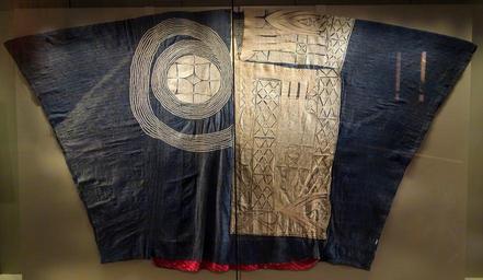 | Keywords: Man's embroidered robe, Nigeria, 1900-1925, cotton, silk, embroidery - Royal Ontario Museum - DSC04451.JPG en Exhibit in the Royal Ontario Museum Toronto Ontario Canada This work is old enough so that it is in the public domain Photography was permitted in the museum without restriction 2013-10-08 16 20 42 own Daderot cc-zero Patricia Harris Gallery of Textiles Costume at the Royal Ontario Museum Uploaded with UploadWizard Clothing of Nigeria | ||||