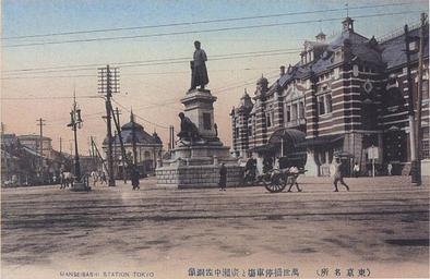 | Keywords: Manseibashi Station Tokyo.jpg en Bronze Statue of Commander Hirose Takeo in Manseibashi Station in Tokyo ja 京名 萬世橋 車場と廣 中佐銅像 between 1912 1923 before 1945 <br/>Note Manseibashi Station was opened in 1912 as brick building however it was destroyed in 1923 by 1923 Great Kantō earthquake Great Kantō earthquake http //kokoronoiori cocolog-nifty com/blog/2010/09/post-e545 html こころの居間・ author PD-Japan-oldphoto Uploaded with UploadWizard Manseibashi Station History of Tokyo Postcards of Tokyo Statues in Tokyo Takeo Hirose Sugino Magoshichi 1912 in Akihabara Akihabara in the 1910s Akihabara in the 1920s 1923 in Akihabara |