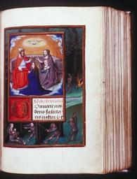 | Keywords: Manuscript 7 104v.jpg This picture shows the Holy Trinity giving Mary a crown While wild figures are shown at the bottom Este cuadro demuestra la trinidad santa que da a Maria una corona Mientras que son salvajes las figuras se demuestran en la parte inferior Ce tableau démontre la trinité sainte qui donne Maria une couronne Tandis que sont sauvages les figures ils sont démontrés dans la partie inférieure Questa tabella dimostra la Trinidad santa che dà Maria una corona Mentre sono selvagge le figure sono dimostrati nella parte inferiore Krönung der heiligen Jungfrau Maria Wilde Leute am Buchrand Stundenbuch Italien latein S104v; Coronation of the Blessed Virgin Mary border of the Wild Folk Book of Hours Italy Latin p 104v Syracuse University Library Department of Special Collections http //libwww syr edu/digital/collections/m/MedievalManuscripts/ms07/104v jpg letzes Viertel 14 Jhd last quarter of the 14th century Buchbinder Ludovicus Bloc Brügge Flandern; binder Ludovicus Bloc Bruges Flanders pd-art PD-Art Syracuse University Library manuscripts Wild man in art Medieval miniatures of Coronation of Mary Books of Hours |