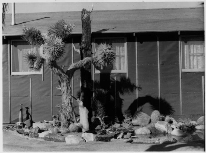 | Keywords: Manzanar Relocation Center, Manzanar, California. William Katsuki, former professional landscape ga . . . - NARA - 538153.jpg Scope and content The full caption for this photograph reads Manzanar Relocation Center Manzanar California William Katsuki former professional landscape gardener for large estates in Southern California demonstrates his skill and ingenuity in creating from materials close at hand a desert garden alongside his home in the barracks at this War Relocation Authority center General notes 538153 Local identifier 210-G-C865A Department of the Interior War Relocation Authority 02/16/1944 - 06/30/1946 NARA-Author Lange Dorothea 1895-1965 Photographer 1372774 <br /> Still Picture Records Section Special Media Archives Services Division NWCS-S National Archives at College Park 8601 Adelphi Road College Park MD 20740-6001 1942-06-30 Record group Record Group 210 Records of the War Relocation Authority 1941 - 1989 Record group ARC 537 Central Photographic File of the War Relocation Authority compiled 1942 - 1945 Series ARC 536000 File unit File unit ARC Variant control numbers NAIL Control Number NWDNS-210-G-C865A Other versions <gallery> File Manzanar_Relocation_Center _Manzanar _California _William_Katsuki _former_professional_landscape_ga_ _ _ _-_NARA_-_538153 tif tif File Manzanar_Relocation_Center _Manzanar _California _William_Katsuki _former_professional_landscape_ga_ _ _ _-_NARA_-_538153 jpg jpg </gallery> NARA-cooperation PD-USGov Photographs by Dorothea Lange of Manzanar War Relocation Center Gardens in California 1942 Built in California in 1942 1942 in California Manzanar Manzanar War Relocation Center 05 NARA images of Inyo County California Black and white photographs of gardens Manzanar Black and white photographs of California |