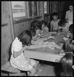 | Keywords: Manzanar Relocation Center, Manzanar, California. These young evacuees are attending the first elem . . . - NARA - 537956.jpg Scope and content The full caption for this photograph reads Manzanar Relocation Center Manzanar California These young evacuees are attending the first elementary school at this War Relocation Authority center There are six grades with volunteer teachers and voluntary attendance General notes 537956 Local identifier 210-G-C658 Department of the Interior War Relocation Authority 02/16/1944 - 06/30/1946 NARA-Author Lange Dorothea 1895-1965 Photographer 1372774 <br /> Still Picture Records Section Special Media Archives Services Division NWCS-S National Archives at College Park 8601 Adelphi Road College Park MD 20740-6001 1942-07-01 Record group Record Group 210 Records of the War Relocation Authority 1941 - 1989 Record group ARC 537 Central Photographic File of the War Relocation Authority compiled 1942 - 1945 Series ARC 536000 File unit File unit ARC Variant control numbers NAIL Control Number NWDNS-210-G-C658 Other versions <gallery> File Manzanar_Relocation_Center _Manzanar _California _These_young_evacuees_are_attending_the_first_elem_ _ _ _-_NARA_-_537956 tif tif File Manzanar_Relocation_Center _Manzanar _California _These_young_evacuees_are_attending_the_first_elem_ _ _ _-_NARA_-_537956 jpg jpg </gallery> NARA-cooperation PD-USGov Photographs by Dorothea Lange of Manzanar War Relocation Center |