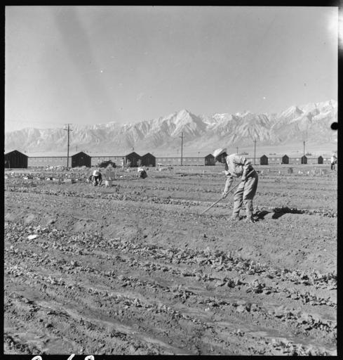 Keywords: Manzanar Relocation Center, Manzanar, California. Evacuees of Japanese ancestry are growing flouris . . . - NARA - 537978.jpg Scope and content The full caption for this photograph reads Manzanar Relocation Center Manzanar California Evacuees of Japanese ancestry are growing flourishing truck crops for their own use in their hobby gardens These crops are grown in plots 10 x 50 feet between blocks of barrack at this War Relocation Authority center General notes 537978 Local identifier 210-G-C681 Department of the Interior War Relocation Authority 02/16/1944 - 06/30/1946 NARA-Author Lange Dorothea 1895-1965 Photographer 1372774 <br /> Still Picture Records Section Special Media Archives Services Division NWCS-S National Archives at College Park 8601 Adelphi Road College Park MD 20740-6001 1942-07-02 Record group Record Group 210 Records of the War Relocation Authority 1941 - 1989 Record group ARC 537 Central Photographic File of the War Relocation Authority compiled 1942 - 1945 Series ARC 536000 File unit File unit ARC Variant control numbers NAIL Control Number NWDNS-210-G-C681 Other versions <gallery> File Manzanar_Relocation_Center _Manzanar _California _Evacuees_of_Japanese_ancestry_are_growing_flouris_ _ _ _-_NARA_-_537978 tif tif File Manzanar_Relocation_Center _Manzanar _California _Evacuees_of_Japanese_ancestry_are_growing_flouris_ _ _ _-_NARA_-_537978 jpg jpg </gallery> NARA-cooperation PD-USGov Photographs by Dorothea Lange of Manzanar War Relocation Center |