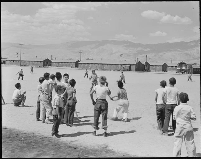 Keywords: Manzanar Relocation Center, Manzanar, California. One of the 80 baseball teams which have been form . . . - NARA - 538060.jpg Scope and content The full caption for this photograph reads Manzanar Relocation Center Manzanar California One of the 80 baseball teams which have been formed in the three months that this War Relocation Authority center has been opened for evacuees of Japanese ancestry Most of the playing is done in the wide firebreak between blocks of barracks General notes 538060 Local identifier 210-G-C767 Department of the Interior War Relocation Authority 02/16/1944 - 06/30/1946 NARA-Author Lange Dorothea 1895-1965 Photographer 1372774 <br /> Still Picture Records Section Special Media Archives Services Division NWCS-S National Archives at College Park 8601 Adelphi Road College Park MD 20740-6001 1942-07-03 Record group Record Group 210 Records of the War Relocation Authority 1941 - 1989 Record group ARC 537 Central Photographic File of the War Relocation Authority compiled 1942 - 1945 Series ARC 536000 File unit File unit ARC Variant control numbers NAIL Control Number NWDNS-210-G-C767 Other versions <gallery> File Manzanar_Relocation_Center _Manzanar _California _One_of_the_80_baseball_teams_which_have_been_form_ _ _ _-_NARA_-_538060 tif tif File Manzanar_Relocation_Center _Manzanar _California _One_of_the_80_baseball_teams_which_have_been_form_ _ _ _-_NARA_-_538060 jpg jpg </gallery> NARA-cooperation PD-USGov Photographs by Dorothea Lange of Manzanar War Relocation Center |