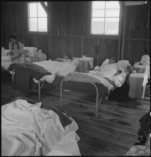 | Keywords: Manzanar Relocation Center, Manzanar, California. Women's ward in the temporary barracks hospital a . . . - NARA - 538143.jpg Scope and content The full caption for this photograph reads Manzanar Relocation Center Manzanar California Women's ward in the temporary barracks hospital at this War Relocation Authority Center for evacuees of Japanese ancestry The new hospital with accommodations for 250 beds is almost ready for occupancy General notes 538143 Local identifier 210-G-C856 Department of the Interior War Relocation Authority 02/16/1944 - 06/30/1946 NARA-Author Lange Dorothea 1895-1965 Photographer 1372774 <br /> Still Picture Records Section Special Media Archives Services Division NWCS-S National Archives at College Park 8601 Adelphi Road College Park MD 20740-6001 1942-07-03 Record group Record Group 210 Records of the War Relocation Authority 1941 - 1989 Record group ARC 537 Central Photographic File of the War Relocation Authority compiled 1942 - 1945 Series ARC 536000 File unit File unit ARC Variant control numbers NAIL Control Number NWDNS-210-G-C856 Other versions <gallery> File Manzanar_Relocation_Center _Manzanar _California _Women's_ward_in_the_temporary_barracks_hospital_a_ _ _ _-_NARA_-_538143 tif tif File Manzanar_Relocation_Center _Manzanar _California _Women's_ward_in_the_temporary_barracks_hospital_a_ _ _ _-_NARA_-_538143 jpg jpg </gallery> NARA-cooperation PD-USGov Photographs by Dorothea Lange of Manzanar War Relocation Center Hospital beds |