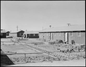 | Keywords: Manzanar Relocation Center, Manzanar, California. There are many evidences of skill and ambition wi . . . - NARA - 538157.jpg Scope and content The full caption for this photograph reads Manzanar Relocation Center Manzanar California There are many evidences of skill and ambition within this War Relocation Authority center for evacuees of Japanese ancestry as seen by the flower garden under construction in the foreground This family was in the nursery business before evacuation General notes 538157 Local identifier 210-G-C872 Department of the Interior War Relocation Authority 02/16/1944 - 06/30/1946 NARA-Author Lange Dorothea 1895-1965 Photographer 1372774 <br /> Still Picture Records Section Special Media Archives Services Division NWCS-S National Archives at College Park 8601 Adelphi Road College Park MD 20740-6001 1942-06-29 Record group Record Group 210 Records of the War Relocation Authority 1941 - 1989 Record group ARC 537 Central Photographic File of the War Relocation Authority compiled 1942 - 1945 Series ARC 536000 File unit File unit ARC Variant control numbers NAIL Control Number NWDNS-210-G-C872 Other versions <gallery> File Manzanar_Relocation_Center _Manzanar _California _There_are_many_evidences_of_skill_and_ambition_wi_ _ _ _-_NARA_-_538157 tif tif File Manzanar_Relocation_Center _Manzanar _California _There_are_many_evidences_of_skill_and_ambition_wi_ _ _ _-_NARA_-_538157 jpg jpg </gallery> NARA-cooperation PD-USGov Photographs by Dorothea Lange of Manzanar War Relocation Center |