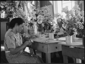 | Keywords: Manzanar Relocation Center, Manzanar, California. Making artificial flowers in the Art School at th . . . - NARA - 538182.jpg Scope and content The full caption for this photograph reads Manzanar Relocation Center Manzanar California Making artificial flowers in the Art School at this War Relocation Authority center for evacuees of Japanese ancestry General notes 538182 Local identifier 210-G-C900 Department of the Interior War Relocation Authority 02/16/1944 - 06/30/1946 NARA-Author Lange Dorothea 1895-1965 Photographer 1372774 <br /> Still Picture Records Section Special Media Archives Services Division NWCS-S National Archives at College Park 8601 Adelphi Road College Park MD 20740-6001 1942-06-30 Record group Record Group 210 Records of the War Relocation Authority 1941 - 1989 Record group ARC 537 Central Photographic File of the War Relocation Authority compiled 1942 - 1945 Series ARC 536000 File unit File unit ARC Variant control numbers NAIL Control Number NWDNS-210-G-C900 Other versions <gallery> File Manzanar_Relocation_Center _Manzanar _California _Making_artificial_flowers_in_the_Art_School_at_th_ _ _ _-_NARA_-_538182 tif tif File Manzanar_Relocation_Center _Manzanar _California _Making_artificial_flowers_in_the_Art_School_at_th_ _ _ _-_NARA_-_538182 jpg jpg </gallery> NARA-cooperation PD-USGov Photographs by Dorothea Lange of Manzanar War Relocation Center |