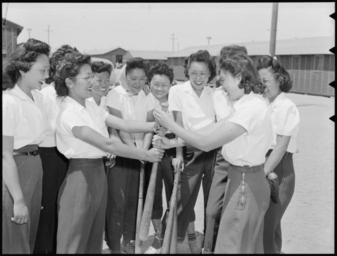 | Keywords: Manzanar Relocation Center, Manzanar, California. Members of the Chick-a-dee soft ball team from Lo . . . - NARA - 538496.jpg Scope and content The full caption for this photograph reads Manzanar Relocation Center Manzanar California Members of the Chick-a-dee soft ball team from Los Angeles choose sides for a practice game at Manzanar where since evacuation the girls have kept their team intact The squad leaders with hands on bat are Ritsuko Masuda left and Marion Fujii General notes 538496 Local identifier 210-G-D527 Department of the Interior War Relocation Authority 02/16/1944 - 06/30/1946 NARA-Author Stewart Francis War Relocation Authority photographer Photographer 8464475 <br /> Still Picture Records Section Special Media Archives Services Division NWCS-S National Archives at College Park 8601 Adelphi Road College Park MD 20740-6001 1942-05-30 Record group Record Group 210 Records of the War Relocation Authority 1941 - 1989 Record group ARC 537 Central Photographic File of the War Relocation Authority compiled 1942 - 1945 Series ARC 536000 File unit File unit ARC Variant control numbers NAIL Control Number NWDNS-210-G-D527 Other versions <gallery> File Manzanar_Relocation_Center _Manzanar _California _Members_of_the_Chick-a-dee_soft_ball_team_from_Lo_ _ _ _-_NARA_-_538496 tif tif File Manzanar_Relocation_Center _Manzanar _California _Members_of_the_Chick-a-dee_soft_ball_team_from_Lo_ _ _ _-_NARA_-_538496 jpg jpg </gallery> NARA-cooperation PD-USGov Manzanar War Relocation Center |