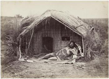 | Keywords: Maori Chief Tahau in whare mid1870s.jpg Maori Chief Tahau holding a patu a stone club lying in porch of a whare meething house New Zealand Mid 1870s Albumen print 15 x 21 cm Title photographer's initials and number 153 in lower edge in the neagtive mounted to board time-stained in edges annotated in pencil in lower left corner on mount http //www bassenge com Galerie Bassenge s 1870 anonymous PD-old-100 Images from Galerie Bassenge 1870s photographs Māori chiefs Maori meeting houses New Zealand in the 1870s Maori weapons Mere weapon |