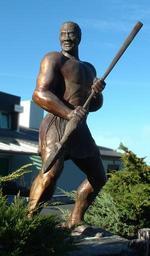 Keywords: Maori-Warrior-sculpture.jpg Bronze sculpture of Maori warrior outside hotel in Hamilton New Zealand Photo taken by Kaiwhakahaere 2008-05-27 Kaiwhakahaere PD Maori sculptures Maori in art