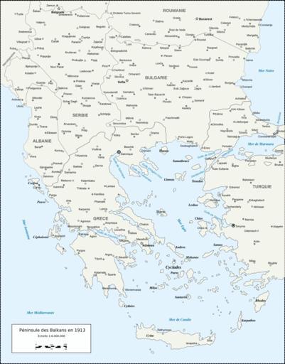 | Keywords: Map of the Balkans (1913) - fr.svg The Balkan Peninsula in 1913 Balkans_ 1913 jpg 2008-09-02 13 31 UTC derivative work Tinodela <span class signature-talk >talk</span> Balkans_ 1913 jpg own scan Balkans_ 1913 jpg PD-old original upload log This image is a derivative work of the following images Image Balkans_ 1913 jpg licensed with PD-old 2008-05-12T23 39 08Z Olahus 1883x2405 2129996 Bytes <nowiki> The Balkan Peninsula in 1913 Petermanns Mitteilungen 1913 own scan Old maps of the Balkans</nowiki> Uploaded with derivativeFX Maps of the history of the modern Balkans SVG maps showing history in French |