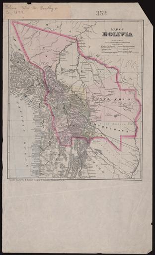 | Keywords: Map of Bolivia WDL11315.png Artwork ru Ка та Боливии fr Carte de la Bolivie en Map of Bolivia zh 玻利维亚 图 pt Mapa da Bolívia ar خريطة بوليفيا ru а этой ка те Боливии 1894 года от ажены основные геог афические особенности ст аны включая Андские го ы на западе и низменности на востоке а ка ту нанесены основные к упные и мелкие го ода столицы и г аницы депа таментов действующие и п оекти уемые железные до оги автомагист али и судоходные еки К оме того показаны место ождения меди золота се еб а и олова свидетельствующие о оли Боливии как одного из ведущих п оизводителей мине ального сы ья а ка те обозначены части соседних госуда ств - Б азилии Па агвая А гентины Чили и Пе у Те ито ия на севе о-востоке ст аны г аничащая с Б азилией помечена как неисследованная Отличительной особенностью ка ты является то что ее нулевой ме идиан п оходит че ез столицу ст аны Ла-Пас п име но 68° западной долготы а не че ез асположенный на те ито ии Великоб итании Г инвич как это было п инято с еди ка тог афов того в емени Ка та была выпущена компанией William M Bradley Company - известным издательством конца XIX века из Филадельфии специализи овавшимся на выпуске геог афических ка т и атласов fr Cette carte de la Bolivie datant de 1894 met en évidence les principales caractéristiques géographiques du pays notamment la cordillère des Andes à l'ouest et les plaines à l'est Elle montre les villes et les villages principaux les capitales des départements les frontières départementales les voies ferrées existantes et en projet les grandes routes et les cours d'eau navigables Les mines de cuivre d'or d'argent et d'étain y sont indiquées soulignant le rôle de la Bolivie comme grand producteur de minéraux Les régions limitrophes du Brésil du Paraguay de l'Argentine du Chili et du Pérou figurent également sur la carte La mention « Inexploré » est écrite dans le territoire au nord-est du pays près de la frontière avec le Brésil La position du premier méridien sur cette carte constitue une caractéristique inhabituelle Au lieu d'être placé sur Greenwich au Royaume-Uni comme c'était la pratique courante parmi les cartographes de l'époque il passe par la capitale La Paz 68° ouest La carte fut publiée par William M Bradley Company éminente maison d'édition de cartes et d'atlas au XIX<sup>e</sup> siècle basée à Philadelphie en This 1894 map of Bolivia highlights the country s main geographic features including the Andes Mountains in the west and the lowlands in the east The map shows major towns and cities the capitals of departments departmental borders completed and projected railroads highways and navigable rivers Mines for copper gold silver and tin are indicated reflecting Bolivia s role as a major mineral producer Neighboring parts of Brazil Paraguay Argentina Chile and Peru are shown Territory in the northeastern part of the country near the border with Brazil is identified as Unexplored An unusual feature of the map is the setting of the prime meridian at the capital city of La Paz approximately 68° W rather than at Greenwich United Kingdom which was standard practice among mapmakers at that time The map was issued by William M Bradley Company a prominent late-19th century publisher of maps and atlases based in Philadelphia zh 这幅 1894 年玻利维亚 图突出描绘了该国的主要 理特征,包括西部安第斯山脉和 部低 图展示了主要城镇 各 会 各 边界 建成或规划中的铁路 公路和 航河流,还标示出了 金 银 锡等矿床 位置,反映了玻利维亚 为矿产大国的 位 周边国家巴西 巴拉 阿根廷 智利和秘鲁的部分邻接领 也 图上予以展示 玻利维亚 北部 域( 近玻-巴边界)被标识为 发 这幅 图的 个特别之处 于 子午线设 首都拉巴斯(约西经 68°), 不是按照当时制图师惯例设 英国格林威治 该 图由 19 世纪 费城著名 图和 图集出版商威廉 M 布兰得利公司 William M Bradley Company 发行 pt Este mapa da Bolívia de 1894 destaca as principais características geográficas do país incluindo as Cordilheiras dos Andes a oeste e as planícies a leste O mapa exibe as principais cidades e vilarejos as capitais dos departamentos fronteiras departamentais ferrovias completas e projetadas rodovias e rios navegáveis As minas de cobre ouro prata e estanho são indicadas o que reflete o papel da Bolívia como um grande produtor de minerais Partes adjacentes do Brasil Paraguai Argentina Chile e Peru são mostradas O território da parte nordeste do país próximo à fronteira com o Brasil é identificado como Não explorado Uma característica pouco comum do mapa é a definição do meridiano primário sobre a capital La Paz aproximadamente a 68° O em vez de sobre Greenwich no Reino Unido o que era a prática padrão entre cartógrafos na época O mapa foi publicado pela William M Bradley Company uma proeminente editora de mapas e atlas do final do século XIX sediada na Filadélfia ar خريطة بوليفيا هذه، التي ترجع إلى العام 1894، تلقي الضوء على الخصائص الجغرافية الر