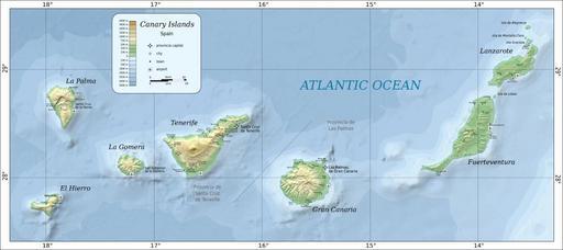| Keywords: Map of the Canary Islands.svg de Karte der Kanarischen Inseln auf Englisch en Map of the Canary Islands ro Harta Insulelor Canare 2007-08-02 Self-made in Inkscape by w User Mysid Based on SRTM data as edited by CGIAR-CSI Place names based on the Open Streetmap Oona Räisänen Mysid other versions <gallery> File Map of the Canary Islands de svg de File Map of the Canary Islands-fr svg fr File Map of the Canary Islands-ro svg ro File Blank topographic map of the Canary Islands svg Blank topographic map for geolocation purpose File Blank administrative map of the Canary Islands svg Blank administrative map for geolocation purpose </gallery> Mysid translation possible Maps of the Canary Islands english language maps of Spain |