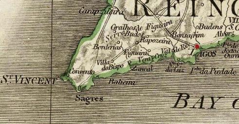 | Keywords: Map of Cape St. Vincent (1797).jpg en Map of of area of Cape St Vincent Cabo de São Vicente Algarve southwestern Portugal including Sagres and Lagos from 1797 map of William Faden Mapoteca do CorpusTerritorial do Sul http //www arkeotavira com/Mapas/ Creator William Faden 1797 PD-old-100 Old maps of Portugal William Faden Algarve |