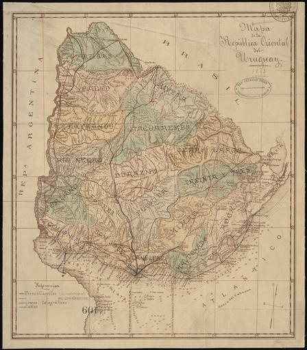 | Keywords: Map of the Eastern Republic of Uruguay, 1893 WDL11330.png Artwork ru Ка та Восточной Республики У угвай 1893 год fr Carte de la République orientale de l'Uruguay 1893 en Map of the Eastern Republic of Uruguay 1893 zh 乌拉 岸共和国 图,1893 年 pt Mapa da República Oriental do Uruguai 1893 ar خريطة لجمهورية أوروغواي الشرقية، عام 1893 ru а этой ка те 1893 года Восточной Республики У угвай República Oriental del Uruguay как эта ст ана называется официально изоб ажены железнодо ожные линии действующие и ст оящиеся телег афные линии и подводные кабели а также п овинции и их г аницы Рельеф показан шт иховкой а ка те указана судоходная инфо мация касающаяся еки Рио-де-ла-Плата в том числе глубины в мет ах асположение и г аницы видимости маяков У угвай кото ый изначально входил в состав испанского вице-ко олевства Рио-де-ла-Плата на яду с А гентиной Па агваем и некото ыми егионами Боливии Б азилии и Чили об ел независимость после длительной бо ьбы в начале XIX века в кото ой п инимали участие Испания По тугалия Б азилия и А гентина В 1814 году у угвайцы вы вались из-под господства Испании но затем ст ана была оккупи ована по тугальскими войсками и п исоединена к Б азилии по тугальской колонии За учившись подде жкой А гентины у угвайские пат иоты в 1825 году восстали п отив б азильского господства В 1828 году Б азилия п изнала независимость У угвая в основном в езультате давления Великоб итании кото ая п отестoвала п отив блокады по тов онтевидео и Буэнос-Ай ес о ганизованной Б азилией Ка та была составлена в онтевидео и в настоящее в емя х анится в емо иальной библиотеке имени Колумба О ганизации Аме иканских Госуда ств в Вашингтоне ок уг Колумбия fr Cette carte de 1893 de la República oriental del Uruguay République orientale de l'Uruguay comme le pays est officiellement appelé montre les lignes de chemin de fer en exploitation et en construction les lignes télégraphiques et les câbles sous-marins ainsi que les provinces et les frontières provinciales Le relief est représenté par des hachures La carte fournit des informations de navigation concernant le rio de la Plata notamment la profondeur des eaux indiquées en mètres et l'emplacement et la visibilité des phares L'Uruguay qui faisait partie à l'origine de la vice-royauté espagnole du rio de La Plata comprenant également l'Argentine le Paraguay des régions de la Bolivie du Brésil et du Chili obtint son indépendance au début du XIX<sup>e</sup> siècle après une longue lutte impliquant l'Espagne le Portugal le Brésil et l'Argentine Libéré du contrôle espagnol en 1814 le pays fut ensuite occupé par les troupes portugaises et annexé à la colonie portugaise du Brésil Avec le soutien de l'Argentine les patriotes uruguayens se révoltèrent contre le Brésil en 1825 En 1828 le Brésil reconnut l'indépendance de l'Uruguay en grande partie sous la pression de la Grande-Bretagne qui s'opposa au blocus brésilien des ports de Montevideo et de Buenos Aires La carte qui fut produite à Montevideo est aujourd'hui conservée à la Bibliothèque Colomb de l'Organisation des États Américains à Washington district de Columbia en This 1893 map of the República Oriental del Uruguay Eastern Republic of Uruguay as the country is officially called shows railroad lines both in operation and under construction telegraph lines and submarine cables; and provinces and provincial boundaries Relief is shown by hachures The map provides navigational information relating to the Rio de la Plata including water depths in meters and the location and visibility of lighthouses Originally part of the Spanish Viceroyalty of the Rio de La Plata that also included Argentina Paraguay and parts of Bolivia Brazil and Chile Uruguay achieved independence after a long struggle in the early 19th century that involved Spain Portugal Brazil and Argentina The Uruguayans originally broke from Spain in 1814 but the country was then occupied by Portuguese troops and annexed to the Portuguese colony of Brazil With support from Argentina Uruguayan patriots revolted against Brazil in 1825 In 1828 Brazil recognized the independence of Uruguay largely under pressure from Great Britain which objected to the Brazilian blockade of the ports of Montevideo and Buenos Aires The map was produced in Montevideo and is now preserved in the Columbus Memorial Library of the Organization of American States in Washington D C zh 这是 幅 1893 年的乌拉 (正式名称为乌拉 岸共和国,República Oriental del Uruguay) 图,上 显示 (运营中的和 建的)铁路线 电报线路 海底电缆以及各 的 界 势由晕滃线示出 图上提供了与拉普拉塔河 关的导航信息,包括水深多少米 灯塔 的位置和能见度 拉普拉塔河的原西班牙 辖区除了乌拉 以外,还包括阿根廷 巴拉 以及玻利维亚 巴西和智利的 部分,19 世纪 ,经