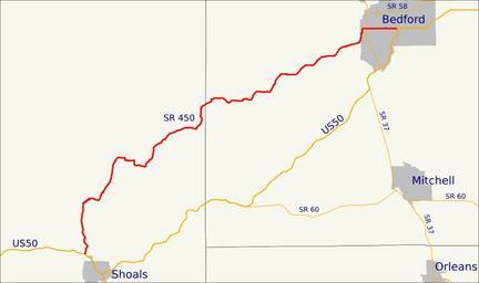 | Keywords: Map of Indiana State Road 450.svg This is a map which shows the route of Indiana State Road 450 in the United States My own work using freely-available shape data and custom-written MapScript applications 2008-03-04 Omnedon Road maps of Indiana SR450 |