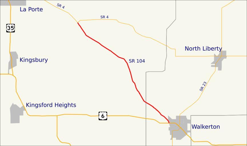 | Keywords: Map of Indiana State Road 104.svg This is a map which shows the route of Indiana State Road 104 in the United States My own work using freely-available shape data and custom-written MapScript applications 2008-03-08 Omnedon Road maps of Indiana SR104 |