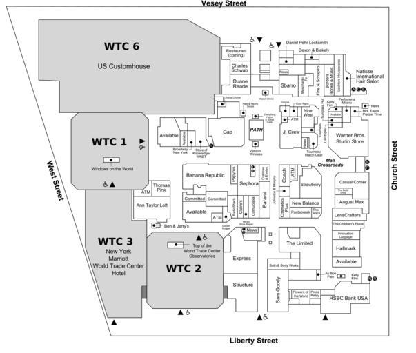 | Keywords: Map of the Mall at the World Trade Center.svg Map of the Mall at the World Trade Center The_Mall_at_the_World_Trade_Center_map png 2011-02-14 23 05 UTC The_Mall_at_the_World_Trade_Center_map png Created by en National Institute of Standards and Technology; originally uploaded by TheListUpdater SVG version Makeemlighter Vector text versions Map of the Mall at the World Trade Center modifiable svg Converted to SVG Makeemlighter The_Mall_at_the_World_Trade_Center_map png PD-USGov Original upload log This image is a derivative work of the following images File The_Mall_at_the_World_Trade_Center_map png licensed with Cc-pd-mark-footer PD-USGov 2011-02-07T03 45 39Z File Upload Bot Magnus Manske 936x843 194061 Bytes <nowiki> en wikipedia subst CURRENTYEAR subst CURRENTMONTHNAME subst CURRENTDAY Prepared by the National Institute of Standards and Technology according </nowiki> Uploaded with derivativeFX Maps and diagrams of the World Trade Center complex 1970 “2001 |