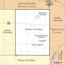 | Keywords: Map of Medina Township, Warren County, Indiana.svg This is a map of Medina Township Warren County Indiana USA My own work using custom-written MapScript applications with http //www census gov/geo/www/tiger/tgrshp2010/tgrshp2010 html United States Census Bureau TIGER 2010 data 2011-01-26 Omnedon Maps of Warren County Indiana Maps by User Omnedon |