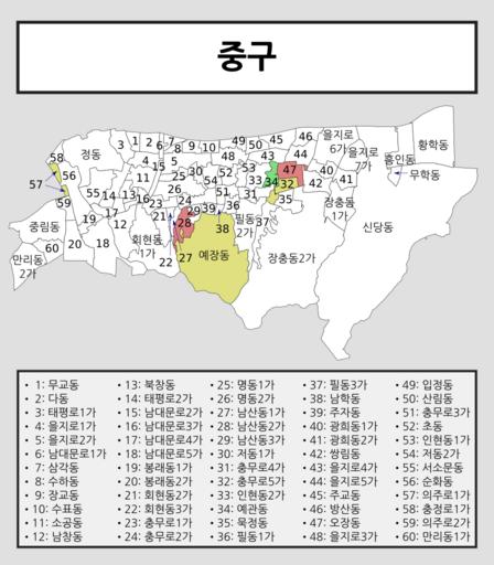 Keywords: Map of Neighborhoods of Jung-gu Seoul.svg ko 울특별 중구 법정동 도 2016-10-03 own exosDelphinus other versions Modification of Korea National Spatial Data Infrastructure Portal data cc-zero Maps of Seoul Jung-gu Seoul