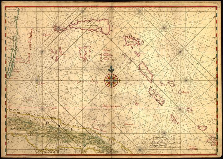 | Keywords: Map of a Part of the Island of Cuba and of the Bahamas WDL6.png Artwork ru Винкебунс Джоан 1617 1670 гг fr Vinckeboons Joan 1617-1670 en Vinckeboons Joan 1617-1670 zh 琼·维奇布斯,1617-1670 年 pt Vinckeboons Joan 1617-1670 ar جون فينكيبونز، 1617-1670 es Vinckeboons Joan 1617-1670 ru Ка та части ост ова Куба и Багамских ост овов fr Carte d'une partie de l'île de Cuba et des Bahamas en Map of a Part of the Island of Cuba and of the Bahamas zh 古巴岛与巴哈马部分的 图 pt Mapa de uma parte da ilha de Cuba e das Bahamas ar خريطة لجزء من جزيرة كوبا وجزر البهاما ru Джоан Винкебунс 1617-70 гг голландский ка тог аф и г аве одился в семье художников фламандского п оисхождения Он аботал на голландскую Вест-Индскую компанию и в течение более 30 лет составлял ка ты кото ые использовались для то говых и военных т анспо тных пе евозок Данная ка та на кото ой изоб ажена часть цент альной Кубы и Багамских ост овов является п име ом тщательно составляемых под обных ка т кото ые Вест-Индская компания использовала в целях обеспечения безопасности и успешного осуществления мо ских пе евозок в этом егионе а ка те изоб ажен Багамский канал т е Гольфст им кото ый являлся основным мо ским путем вдоль восточного побе ежья Севе ной Аме ики для судов возв ащавшихся в Ев опу а ка те также изоб ажены бе еговая линия бе еговые о иенти ы потенциальные опасности для навигации ост ова г афическое изоб ажение ельефа поселения многочисленные локсод омии и живописно ук ашенная оза вет ов а ка те отмечены населенные пункты вдоль побе ежья Фло иды от мыса Канаве ал до ост овов Киз Ост ов Гуанихани входит в состав Багамских ост овов Геог афические названия п иводятся либо на испанском либо на голландском языке Ка та является частью коллекции укописей Ген и Ха исса х анящейся в Библиотеке Конг есса <br>Рукописные ка ты fr Joan Vinckeboons 1617-1670 était un cartographe et graveur néerlandais issu d'une famille d'artistes d'origine flamande C était un employé de la Compagnie néerlandaise des Indes occidentales et il a produit pendant plus de 30 ans des cartes destinées à la marine militaire et marchande néerlandaise Cette carte d'une partie du centre de Cuba et des Bahamas reflète la cartographie précise employée par la Compagnie néerlandaise des Indes occidentales afin de faciliter une navigation sûre et fructueuse dans cette région Cette carte identifie le canal des Bahamas c'est-à-dire le Gulf Stream qui servait de principal canal de navigation le long de la côte est de l'Amérique du Nord pour les voyages de retour vers l'Europe Elle comprend également le tracé et des caractéristiques des côtes les dangers pour la navigation les îles la représentation graphique du relief les colonies de peuplement de nombreuses lignes de rhumb et une rose des vents très ornée Des sites le long de la côte de Floride du Cap Canaveral jusqu'aux Keys sont identifiés L'île de Guanihani est située dans les Bahamas Les noms géographiques apparaissent en espagnol ou en néerlandais Cette carte fait partie de la collection de manuscrits Henry Harrisse à la Bibliothèque du Congrès <br>Cartes manuscrites en Joan Vinckeboons 1617-70 was a Dutch cartographer and engraver born into a family of artists of Flemish origin He was in the employ of the Dutch West India Company and produced maps for over 30 years for use by Dutch mercantile and military shipping This map of a portion of central Cuba and the Bahamas reflects the careful mapping that the Dutch West India Company undertook to facilitate safe and successful navigation in that region The map identifies the Bahamas Channel i e the Gulf Stream that served as the main shipping channel along the east coast of North America for return voyages to Europe It also includes coastline coastal features navigational hazards islands pictorial representation of relief settlements numerous rhumb lines and an ornate wind rose Sites along the Florida coast from Cape Canaveral to the Keys are identified The island of Guanihani is located in the Bahamas Geographic names appear either in Spanish or Dutch The map is part of the Henry Harrisse Manuscript Collection in the Library of Congress <br>Manuscript maps zh Joan Vinckeboons(1617-70 年)是荷兰人,出生于 个传统的佛兰芒艺 家庭,是 位制图师和雕刻师 他受雇与荷兰西印度公司,绘制 图 30 年,这些 图被用于荷兰的商业和军事运输 这幅 图包含古巴中部和巴哈马的 部分,体现了荷兰西印度公司绘图的认 精神,帮助人们 该 区进行安全和成功的道路导航 该 图显示出巴哈马 道(即墨西哥湾流)是沿北美 海岸返回欧洲航行的主要运输 道 该 图的内容还包括海岸线 沿海特征 航海危险 岛屿 用图案代表的救难点 定居点 众多航程线以及华丽的罗盘花 还标注 沿佛罗里达海岸从卡纳维拉尔