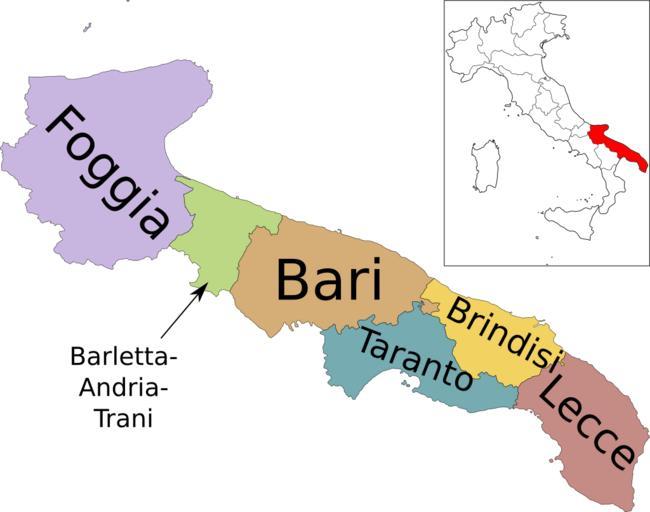 Keywords: Map of region of Apulia, Italy, with provinces-it.svg PUG Italian own Vonvikken 2010-08-04 100px Blank100px العربية100px Deutsch100px Ελληνικά100px Español100px Français100px ქართული100px Русский Valid SVG Inkscape Translation possible AttribSVG Map of region of Apulia Italy svg Vonvikken AttribSVG Italy map with regions svg Helix84 Vonvikken Maps of Apulia |