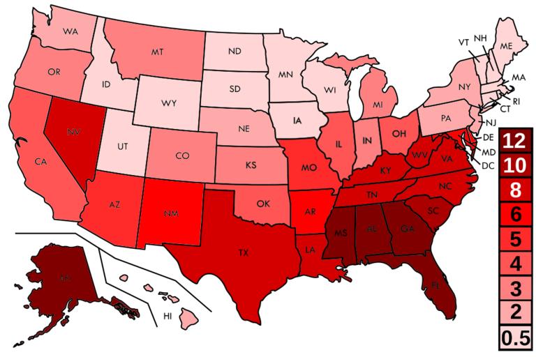 | Keywords: Map of US Murder Rate in 1950.svg en Map of US murder rate in 1950 http //www cdc gov/nchs/data/vsus/vsrates1940_60 pdf Data pgs 661 662 See File Map of US Murder Rate in 1940 svg for data 2016-04-01 own Delphi234 other versions cc-zero Maps of crime statistics for the United States |