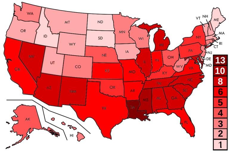 Keywords: Map of US Murder Rate in 2000.svg en Map of US murder rate in 2000 Source http //www ucrdatatool gov/Search/Crime/State/StatebyState cfm 2013-05-31 own Delphi234 cc-zero Maps of crime statistics for the United States