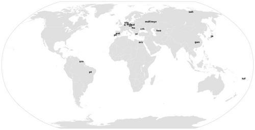 | Keywords: Map of wiki language editions created in 2008.svg en Geographical distribution of languages in which an edition of any Wikimedia project Wikipedia was created in 2008 See incubator I Site creation list for a list fr Distribution géographique des langues dans lesquelles une édition d'un projet Wikimédia Wikipedia était créée en 2008 Voyez incubator I Site creation log pour une liste Adapted from File BlankMap-World6 svg SPQRobin + others see File BlankMap-World6 svg 2011-04-12 File Map of wiki language editions created in 2009 svg File Map of wiki language editions created in 2010 svg Source Adapted from File BlankMap-World6 svg cc-zero Wikimedia statistics Language committee |
