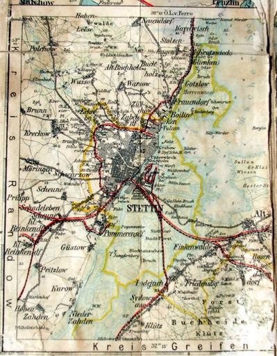 Keywords: Mapa przedwojenna Pomorza (Stettin).jpg pl Mapa przedwojenna Pomorza Stettin Old postcard missing data missing data PD-old Black and white photographs of Poland Old maps of Pomerania