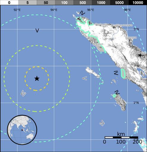 | Keywords: Mapa terremoto de Indonesia de 2012.png es El terremoto del océano Índico de 2012 fue un terremoto de magnitud 8 6 grados en la escala de magnitud de momento que sacudió a Indonesia Tailandia Malasia Sri Lanka India Bangladesh Vietnam Maldivas y Singapur Además obligó a emitir una advertencia de tsunami para 20 países debido a la magnitud del sismo y una posterior réplica de 8 2 grados en la escala de magnitud de momento 2012-04-11 http //earthquake usgs gov/earthquakes/pager/events/us/c000905e/exposure png USGS PD-USGov Uploaded with UploadWizard Earthquake maps |