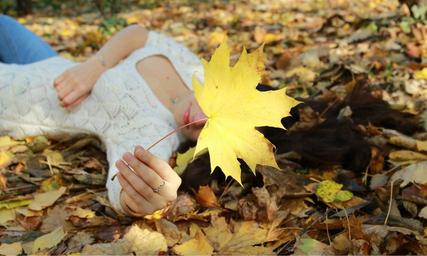 Keywords: maple fall leaf girl yellow autumn leaves season