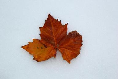 Keywords: maple leaf autumn dried leaf winter snow winter mood season