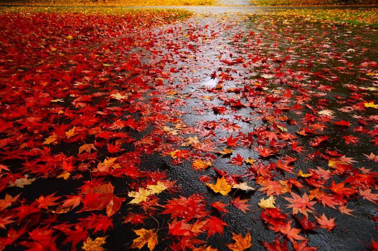 Keywords: maple leaf leaves red autumn fall rain wet nature