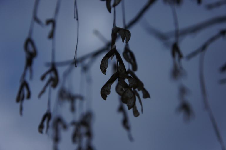 Keywords: maple leaves maple seeds winter old nature sky grey ghostly cold