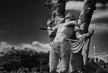 Keywords: maracaibo venezuela san sebastian statue sculpture black and white sky clouds landmark trees flowers outside city cities art artistic