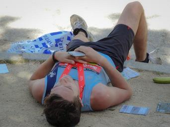 Keywords: marathon run corridor madrid win fatigue lying medal effort