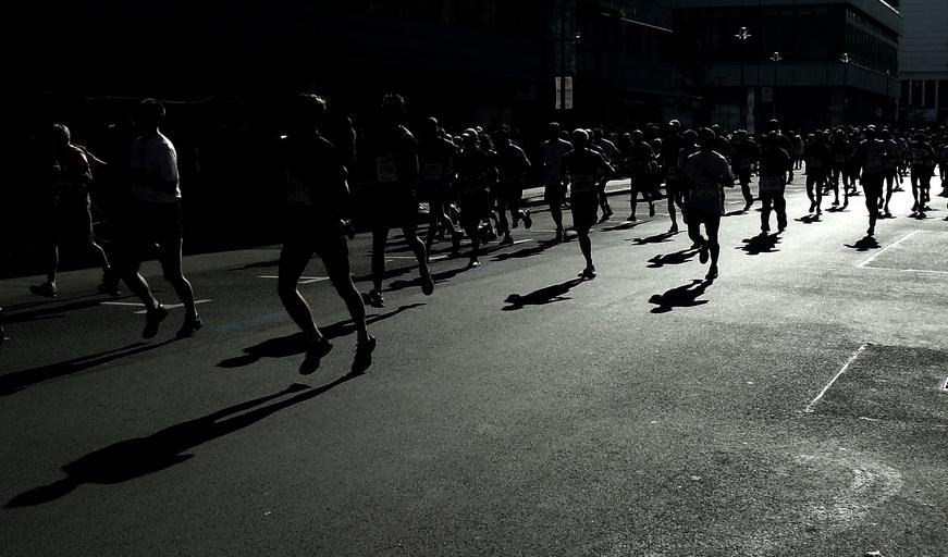 Keywords: marathon sports race run competition human sport event sportsmanship sport person hobby personal runners running sports sporty career endurance endurance run athlete black and white shadow shadow play surreal contrast back light light